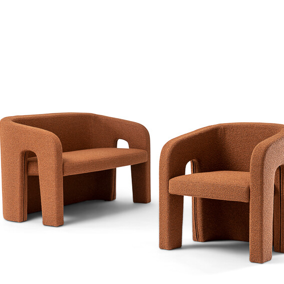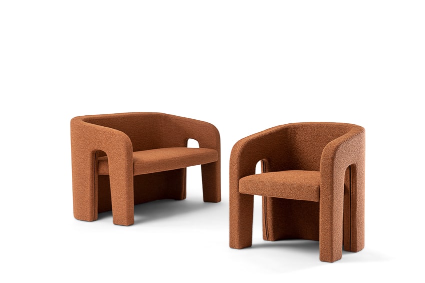 The magnificent lounge chair invokes an out-of-this-world effect. The curvy yet angular proportions create an iconic and perplexing look. The pieces envelop you in a seamless, wraparound comfort with a touch of eccentricity. The lounge chair and sofa are wood padded with multi-density foams making it perfectly comfortable. Both pieces are available in fabric, leather, velvet, and nabuk to combine with a variety of colors.