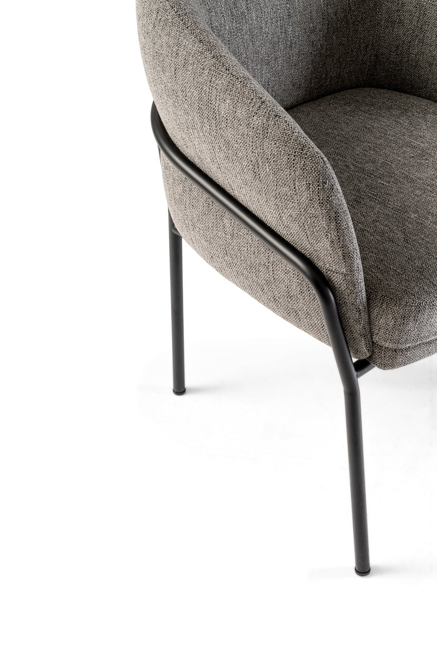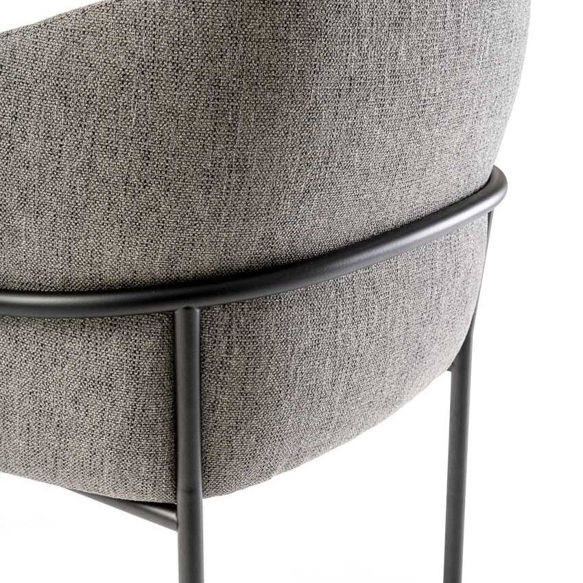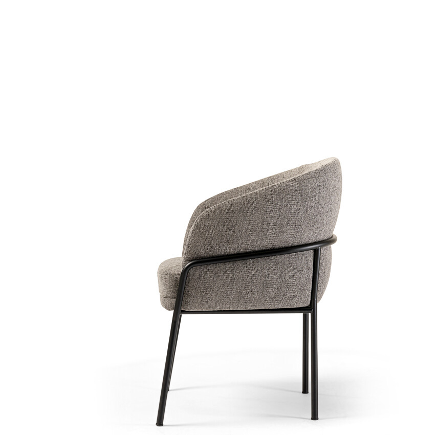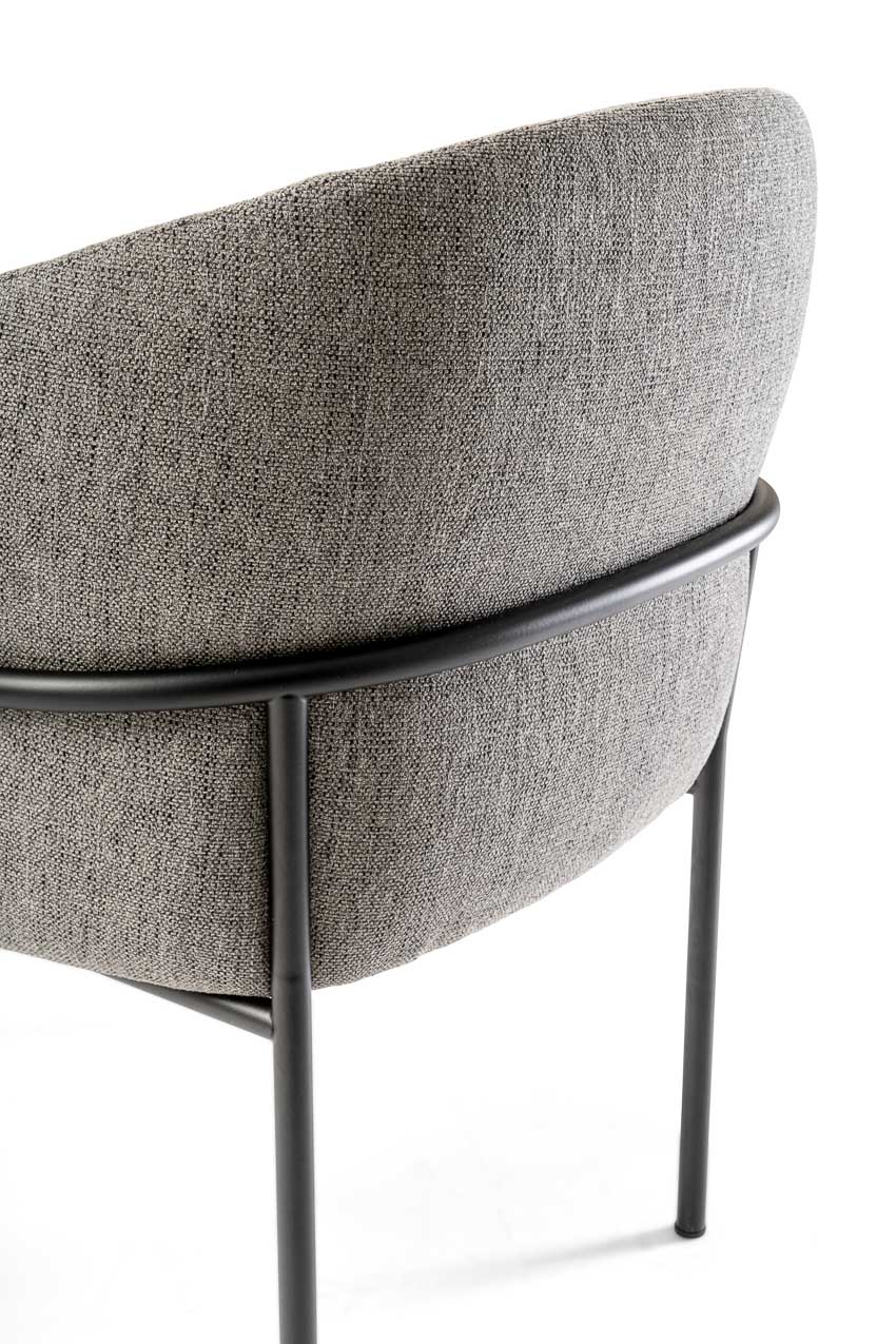 The Avant chair combines elegance, comfort, and style. The chair has a barrel silhouette featuring a unique back. It is offered in fabric, suede, leather, and velvet to complement various colors. The legs of the stool are made of Canaletto walnut wood, which provides an elegant texture of dark flamed and striped veins to contrast its paler shades. The seat structure is wood-padded with multi-density foams to provide long-lasting comfort.