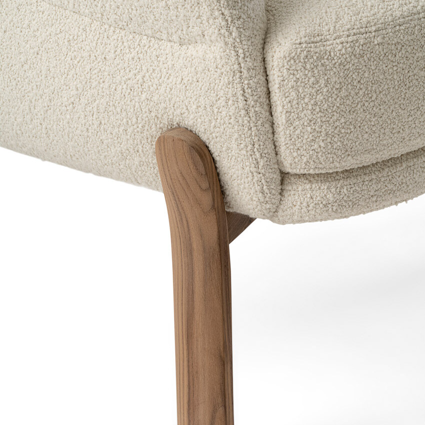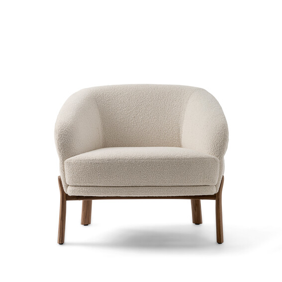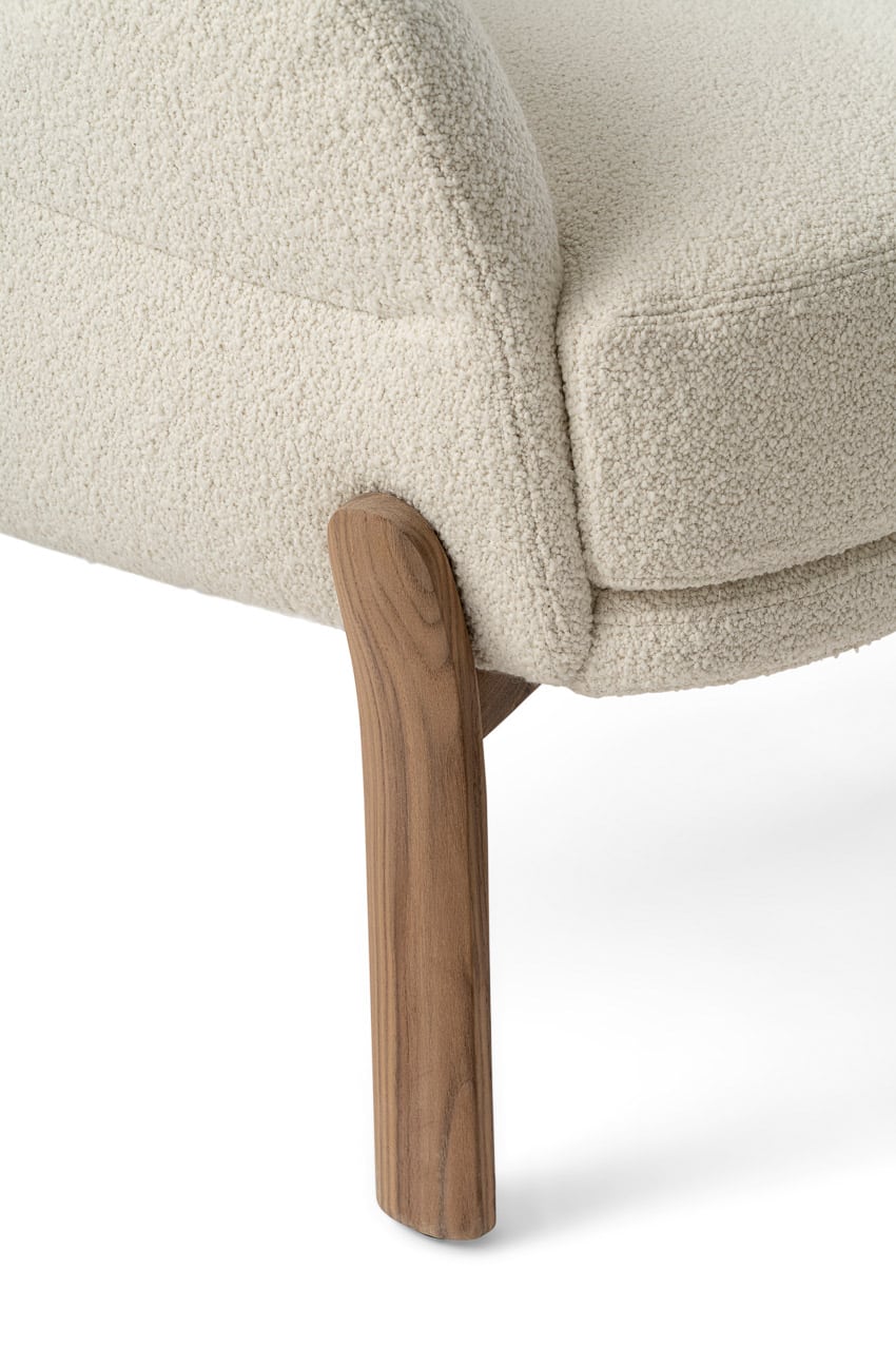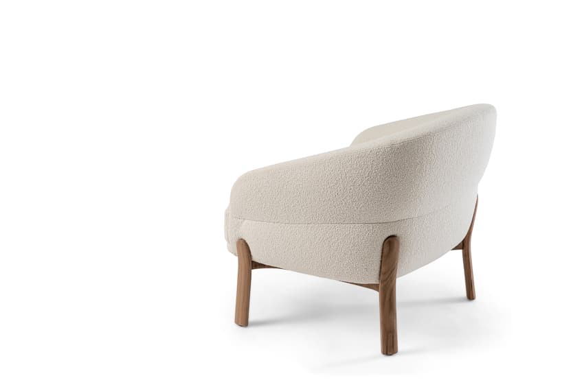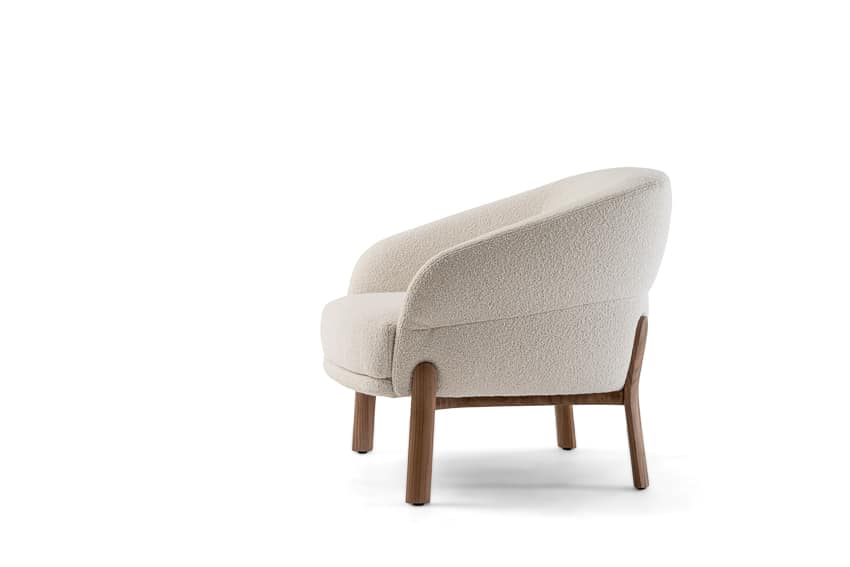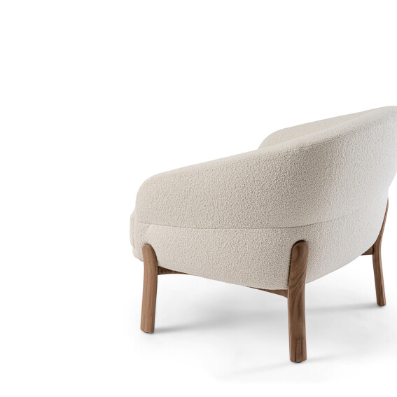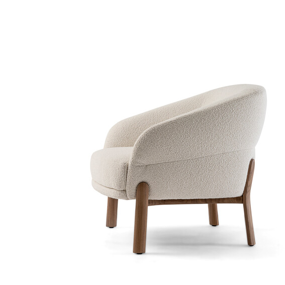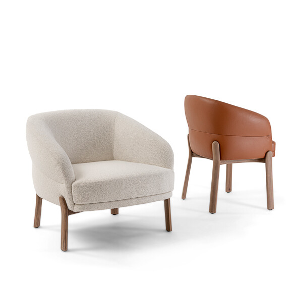 The eye-catching lounge chair bursts with personality. Playful but professional, the cloud-like oversized seat provides the ideal rest. The seat is wood-padded with multi-density foams to maximize softness and comfort. The angular yet round shape allows for a body cradling backrest that is extremely supportive. Its curvaceous proportions are held up by a sturdy and unique base that flows into legs made of Canaletto wood to provide an understated and elegant touch.
