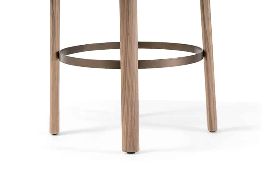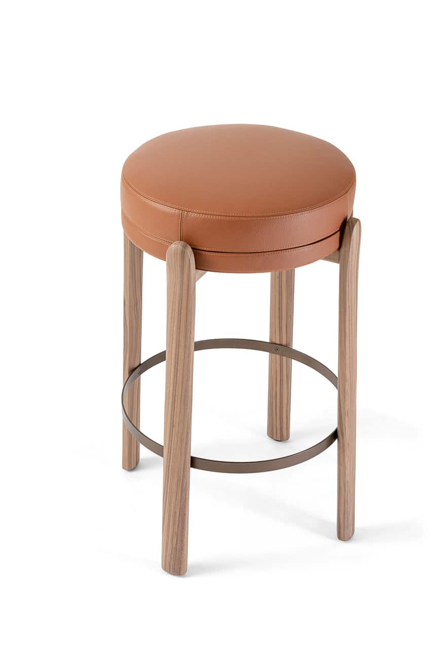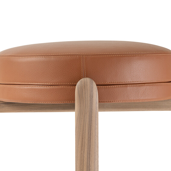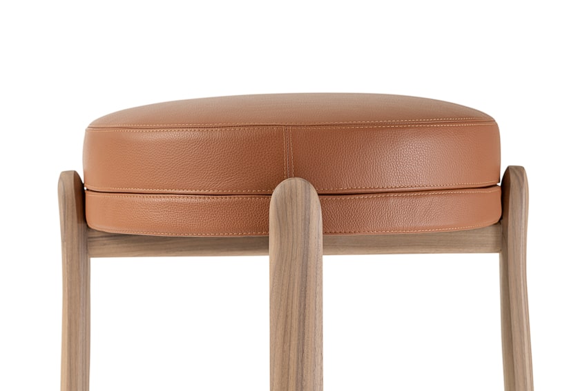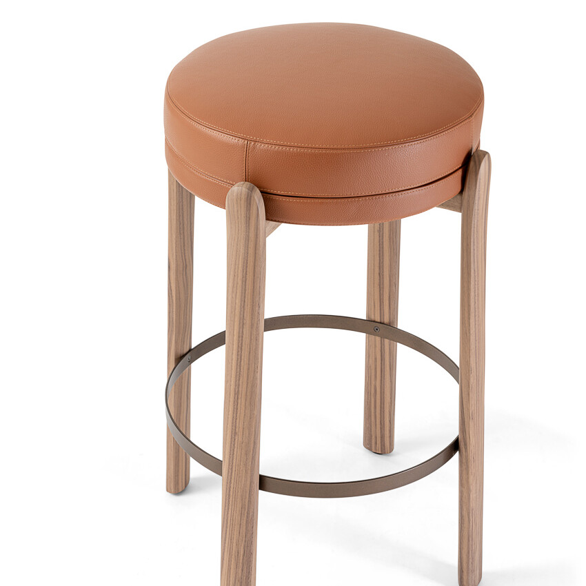 The high-stool is comfortable to sit on while still providing sturdy support. It displays minimal aesthetics and combines tradition with sophisticated industrial touches. We offer the chair in fabric, leather, and suede to complement a variety of gorgeous colors. The simple yet elegant stool is wood padded with multi-density foams. The legs are characterized by a rigorous volume in veneered ash and Canaletto wood.