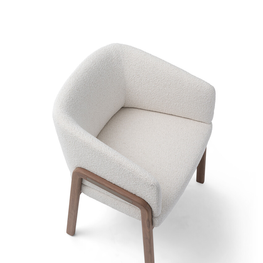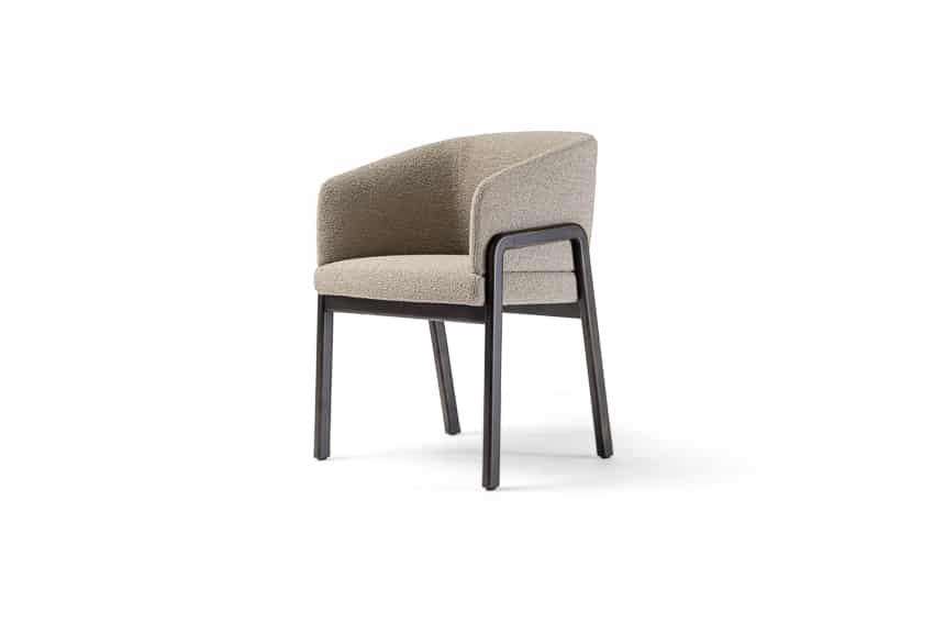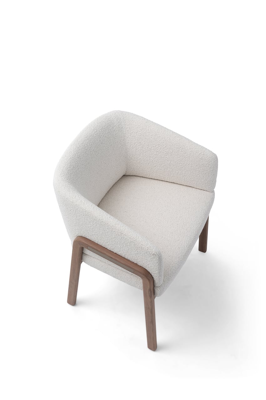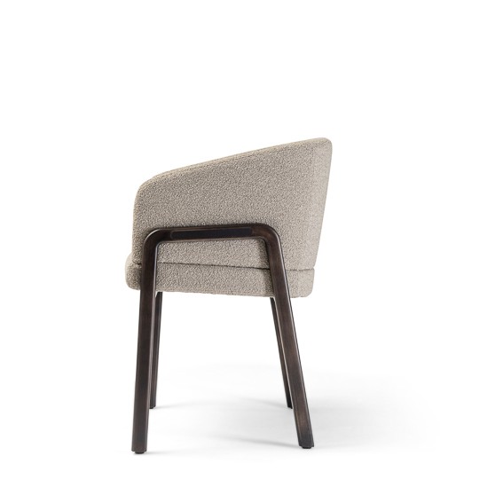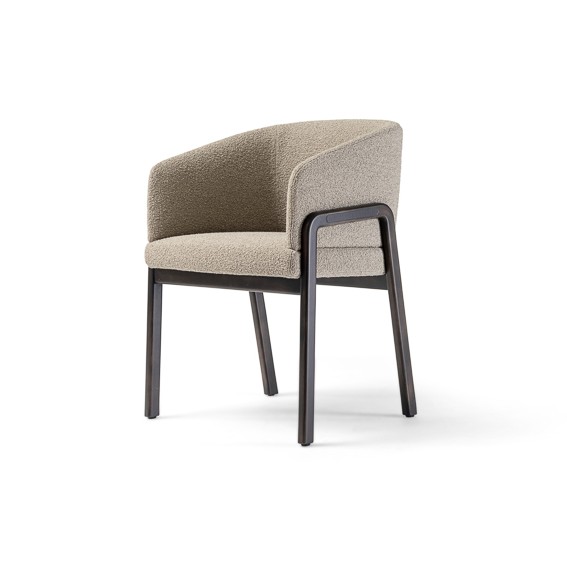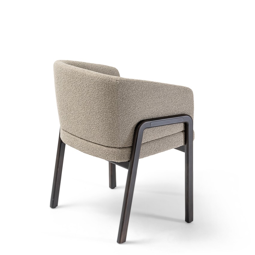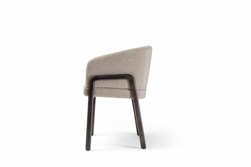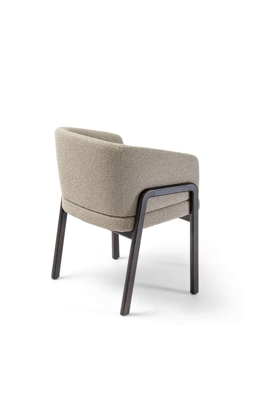 With its enveloping back and wood-padded multi-density foam structure, the chair is of substance and style. The chair displays immaculate proportions and distinctive character, an elegantly curvaceous silhouette, and geometric legs made of top-tier Ash/Canaletto wood. Tailored fabrics, which include fabric, leather, or suede options to combine with various colors, ensure that the chair remains an attention-getting design in any interior scheme.