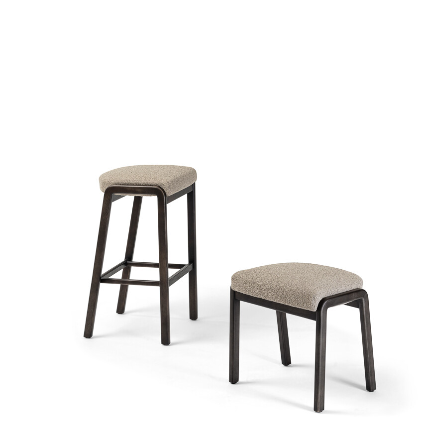 The low-stool is a refined stool that will become a valued addition to your furniture collection. The rectangular and Canelleto walnut wood finish, while its simplicity in form, allows for a smooth and unique transition between places. Fabric, leather, and suede are available in a variety of beautiful colors to complement the stool. The structure of the seat is wood-padded with multi-density foams for excellent comfort.