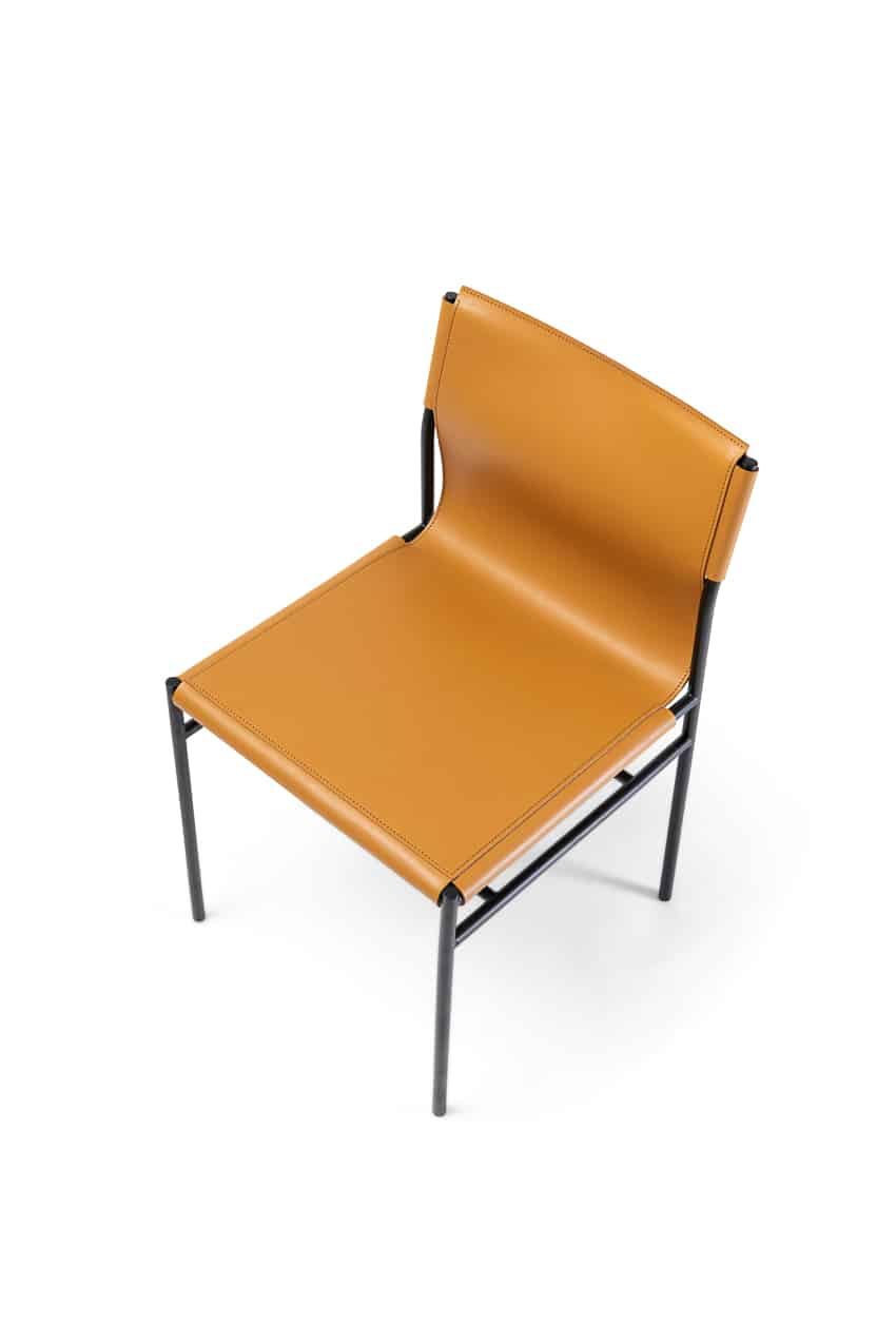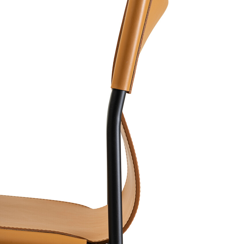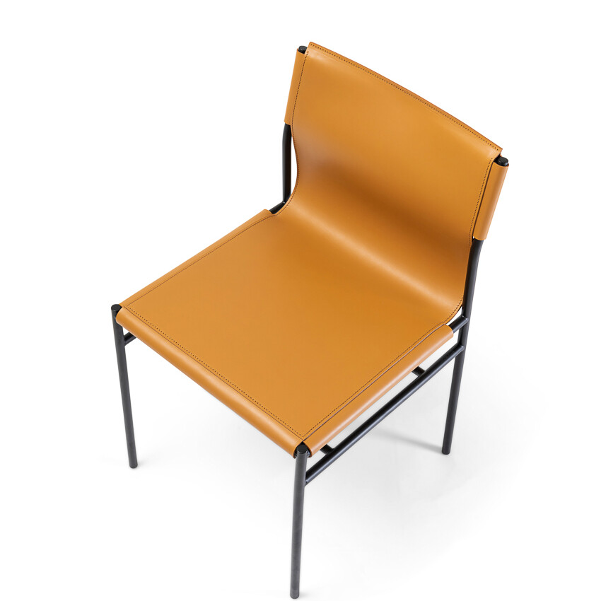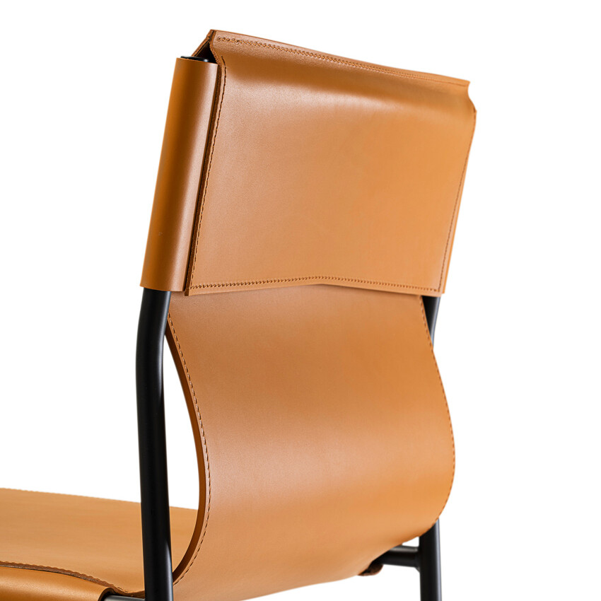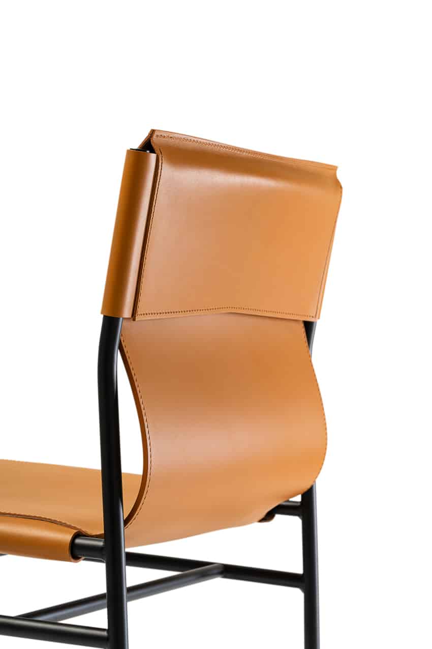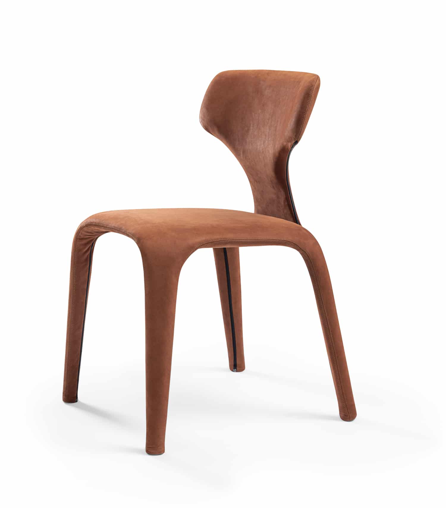 This sleek chair is a work of art in itself. The unique metal frame provides sturdy support and complements the stunning velvet coating. The delicate stitching of the leather is one of a kind that displays the complexity of the minimalist piece. The seat provides excellent comfort due to the multi-density foam and is available in a variety of colors.