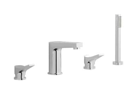 Four holes deck mounted bath filler with shower kit