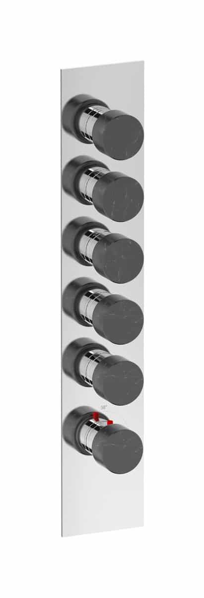 AQUA is a new-generation collection of high-performance thermostats, which guarantees perfect temperature and jet controls thanks to its universal built-in bodies. The result of an innovative evolution, Aqua technology is now applied to complex shower systems, through an array of products that ranges from the two- way and three-way diverters to the one-way to five-way independent controls, for autonomous and simple handling.