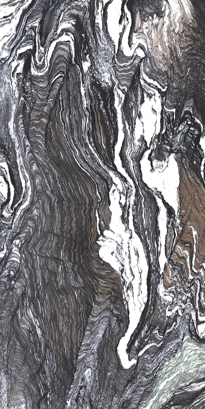 The collection’s repertoire of large slabs features motifs inspired by two separate sources: on the one hand the exquisite, always surprising vein texture of some specific metamorphic rocks, and on the other the sophisticated colours of Marmorino plaster. In spite of their different natures, these two materials are embedded in the culture of Italian architecture.