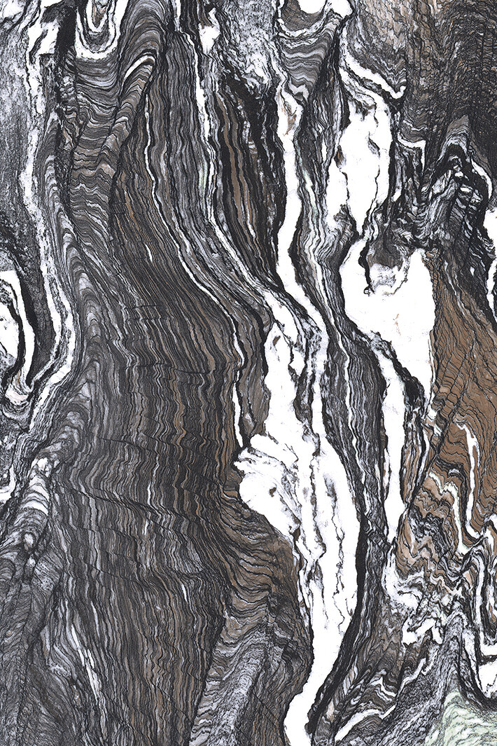 The collection’s repertoire of large slabs features motifs inspired by two separate sources: on the one hand the exquisite, always surprising vein texture of some specific metamorphic rocks, and on the other the sophisticated colours of Marmorino plaster. In spite of their different natures, these two materials are embedded in the culture of Italian architecture.