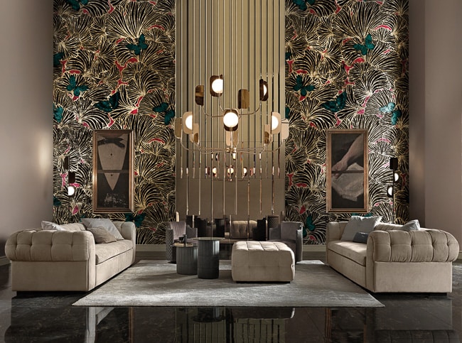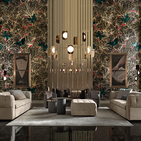 All designs featured in the GoldenWall collection can be printed on gold leaf and on gold vinyl, a wallpaper embellished by a golden pigment. These materials are perfect to create exclusive residential and commercial settings.