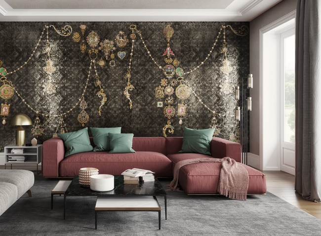 A vinyl paper enriched with a golden color. Ideal for adding value to exclusive and luxury spaces. To maximize the result and to enhance the metal effect color, Inkiostro Bianco will select and suggest the appropriate designs.