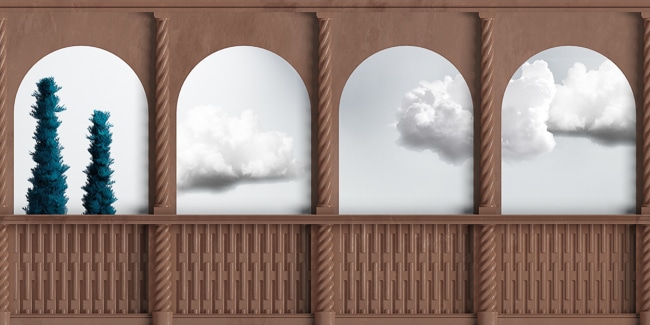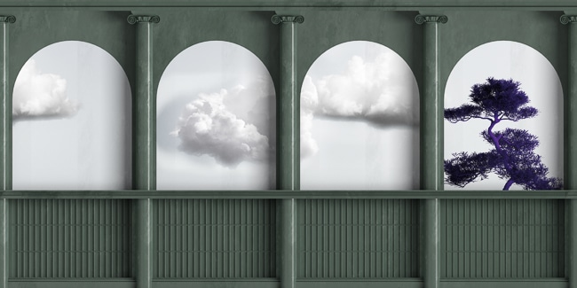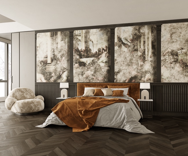 The wallpaper collection Architecture begins with a pleasant meeting: the cooperation with ovre.design®, the interior design studio of Giulia Delpiano and Corrado Conti, who have designed the new Inkiostro Bianco decorations, bringing their vision and know-how to a refined collection with a surrealist imprint.