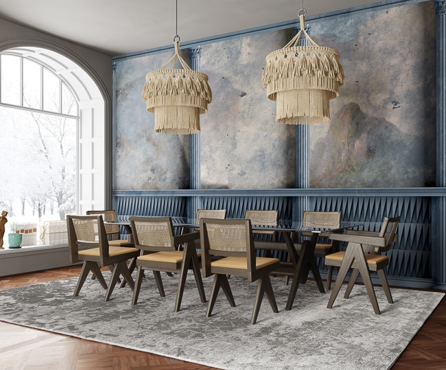 The wallpaper collection Architecture begins with a pleasant meeting: the cooperation with ovre.design®, the interior design studio of Giulia Delpiano and Corrado Conti, who have designed the new Inkiostro Bianco decorations, bringing their vision and know-how to a refined collection with a surrealist imprint.