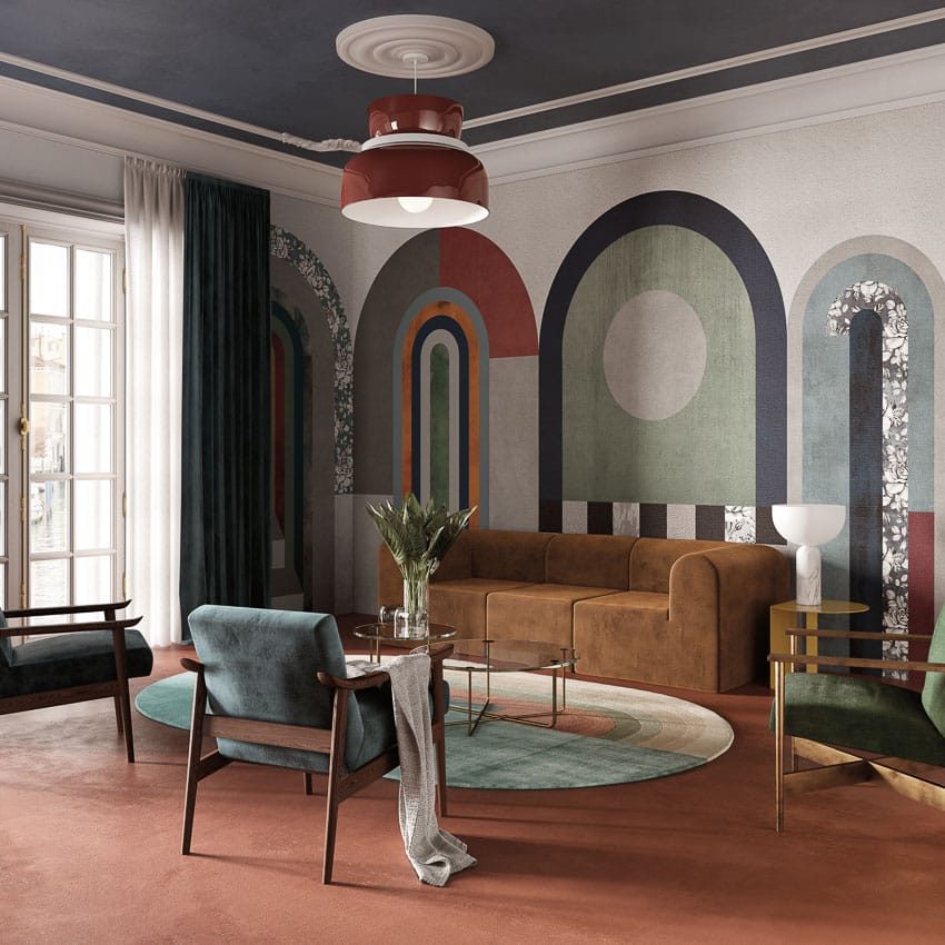 Decorated glass fibre glass for floorings, bathrooms and kitchens. The revolutionary covering with protective and decorative function originates from the cooperation between Inkiostro Bianco and Mapei.