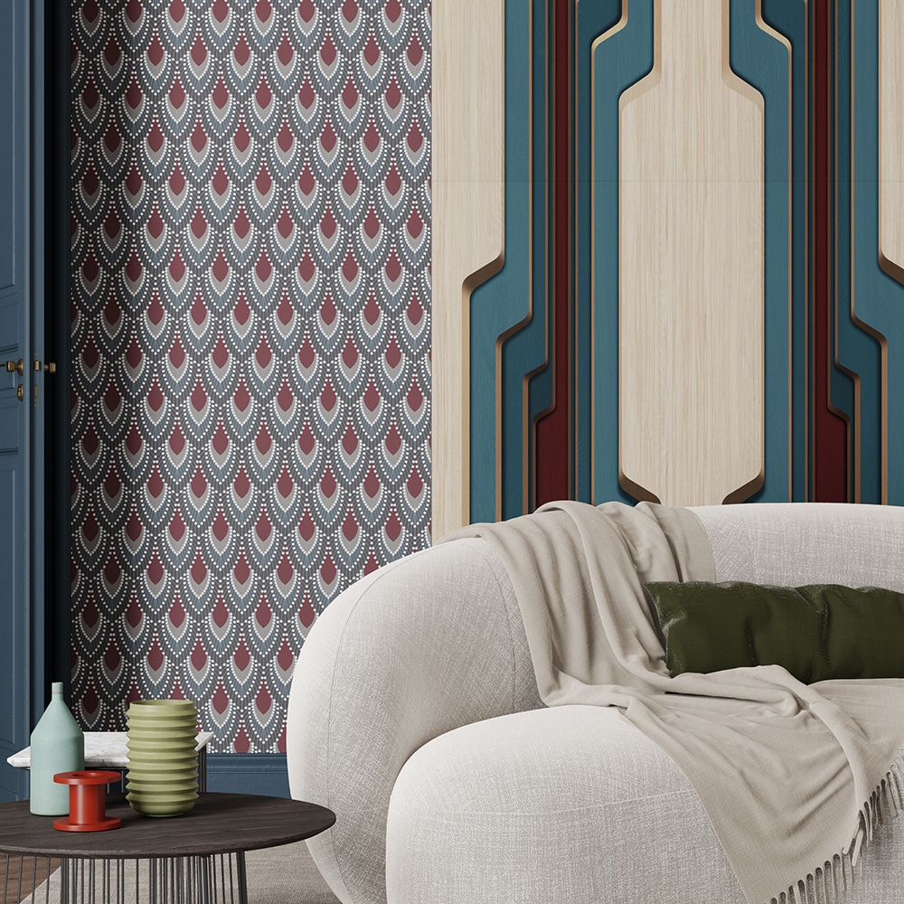 The graphics of the Ambiance collection lend themselves to being interpreted as decorations that dominate the scene on the walls of the entire room, creating an immersive atmosphere, or on a single wall or in combination with other wallcoverings and furnishing, conferring personality to the room.
