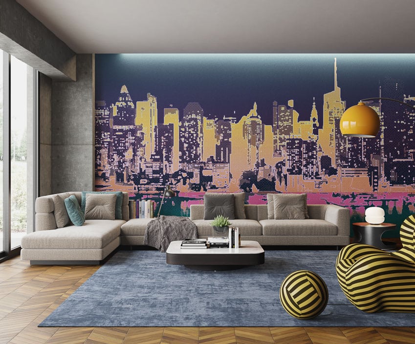 Decorated glass fibre glass for floorings, bathrooms and kitchens. The revolutionary covering with protective and decorative function originates from the cooperation between Inkiostro Bianco and Mapei.