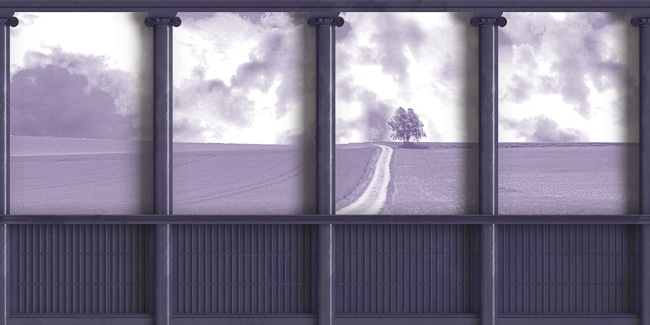 Interiors are reinterpreted. An oxymoron of spaceis created by using three-dimensional elements to recreate two-dimensional ones. Volumes and perspectives, porches and facades are reshaped to fit the surface of the wallpaper.