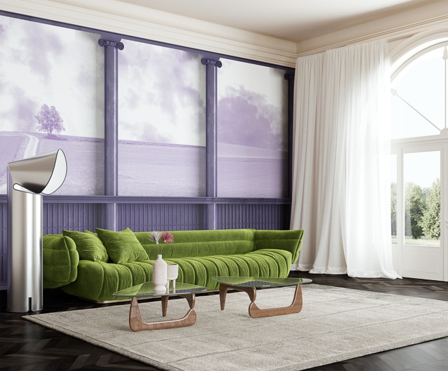 The wallpaper collection Architecture begins with a pleasant meeting: the cooperation with ovre.design®, the interior design studio of Giulia Delpiano and Corrado Conti, who have designed the new Inkiostro Bianco decorations, bringing their vision and know-how to a refined collection with a surrealist imprint.