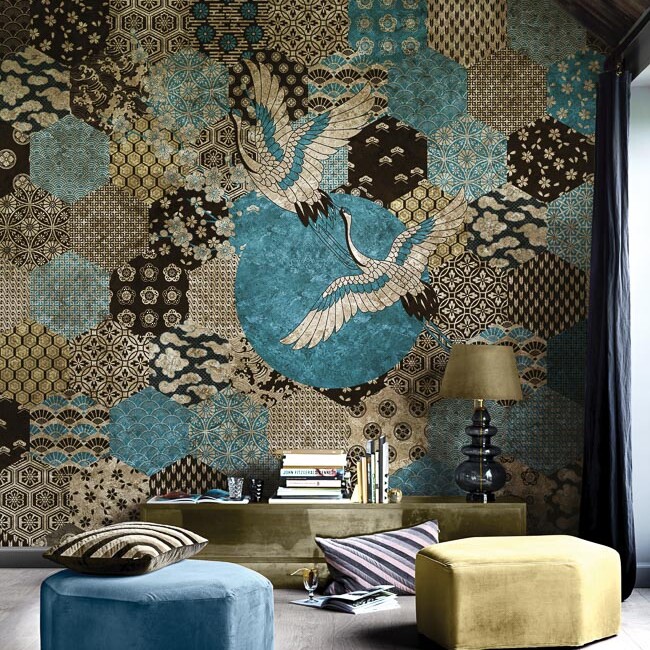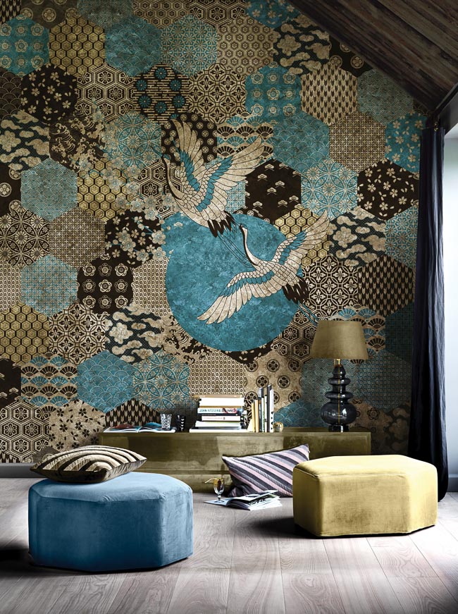 All designs featured in the GoldenWall collection can be printed on gold leaf and on gold vinyl, a wallpaper embellished by a golden pigment. These materials are perfect to create exclusive residential and commercial settings.