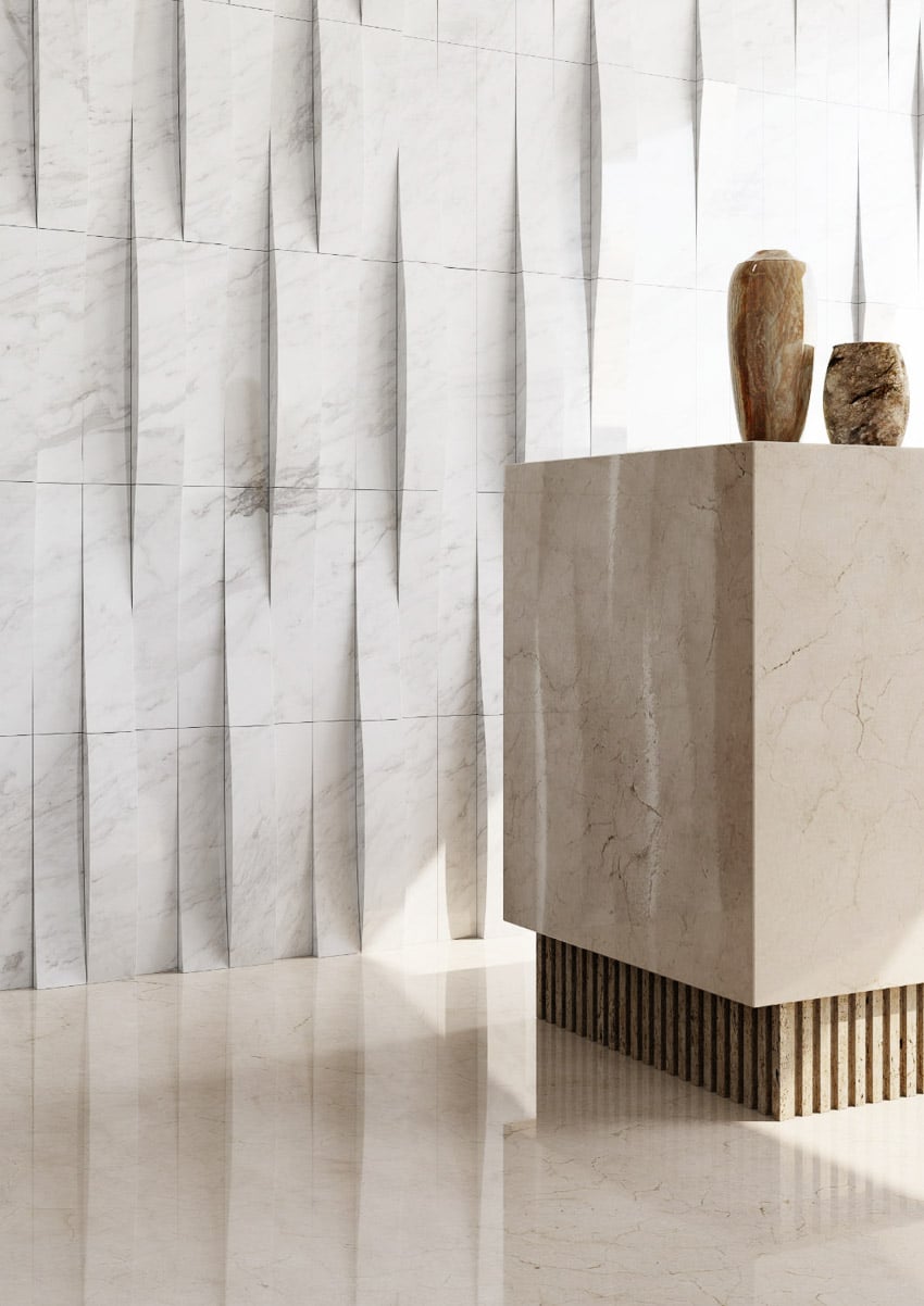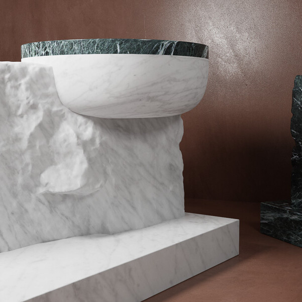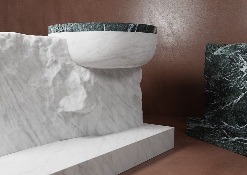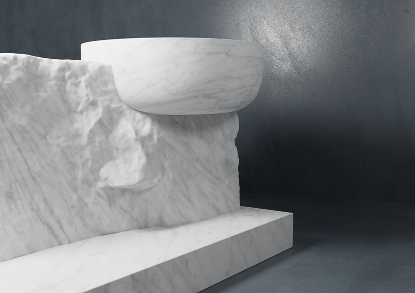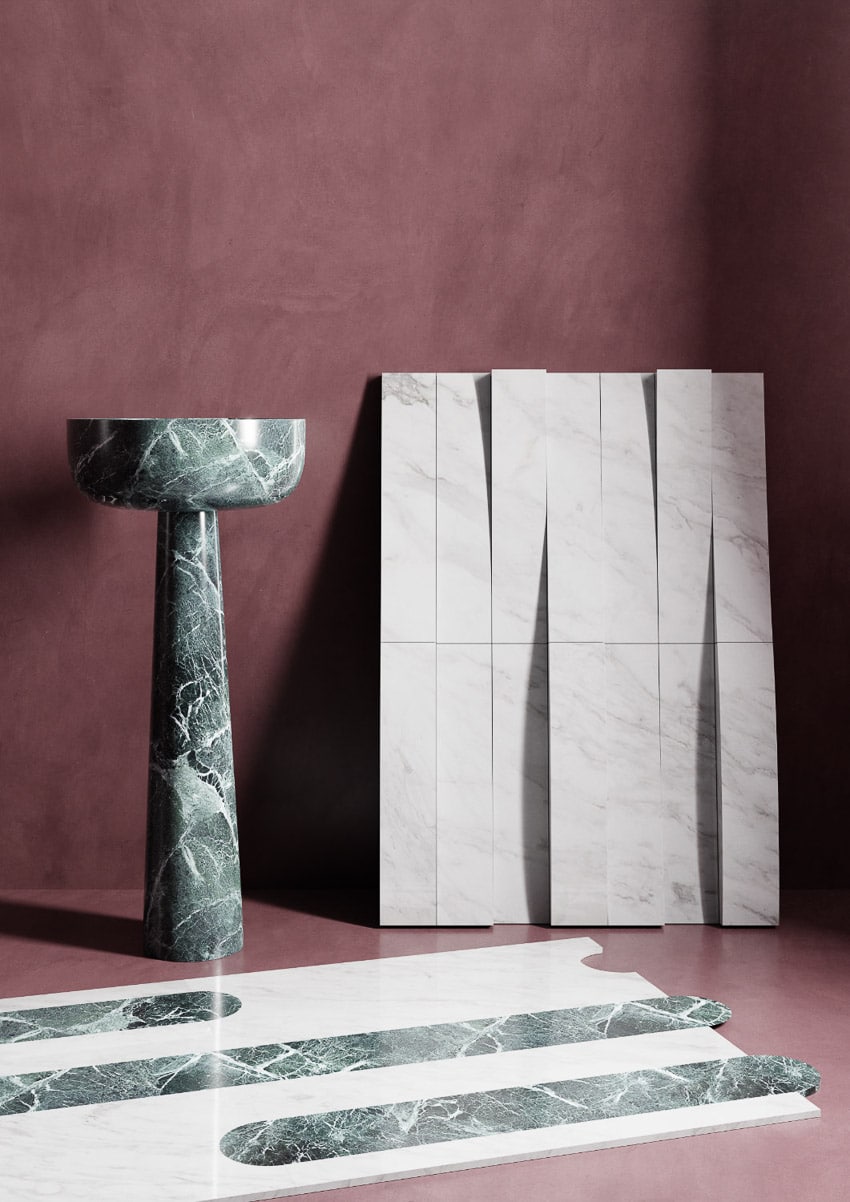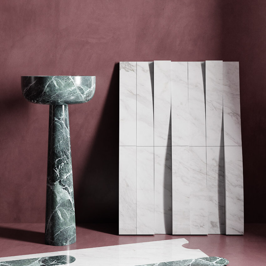 Designed by ovre.design, the collection IMERA by FMG Shapes consists of marble basins, bathtubs, tiles and 3D surfaces.