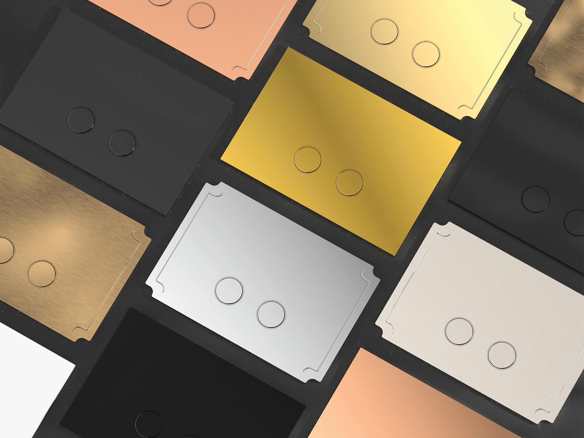 The BYE BYE cover plates are a perfect mix of efficiency and refinement. Compatible with the UP720 / Sigma 8 and UP320 / Sigma12 toilet tanks and equipped with a double water flush, they can be customized in thirteen finishes matching the faucet collections, for a flawless elegance in your bathroom.