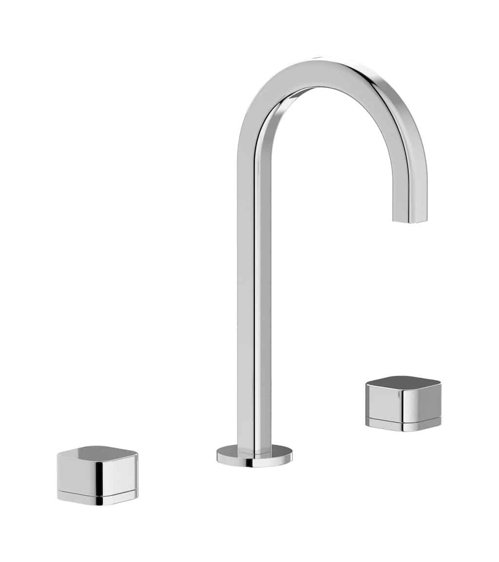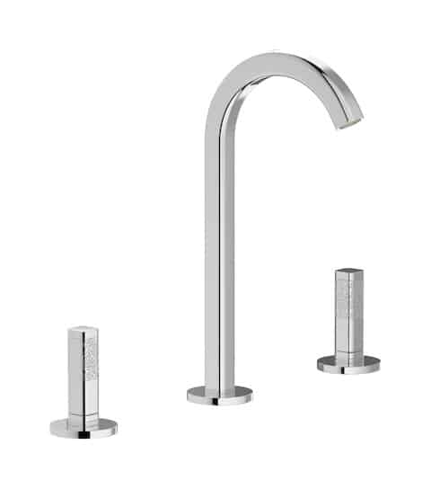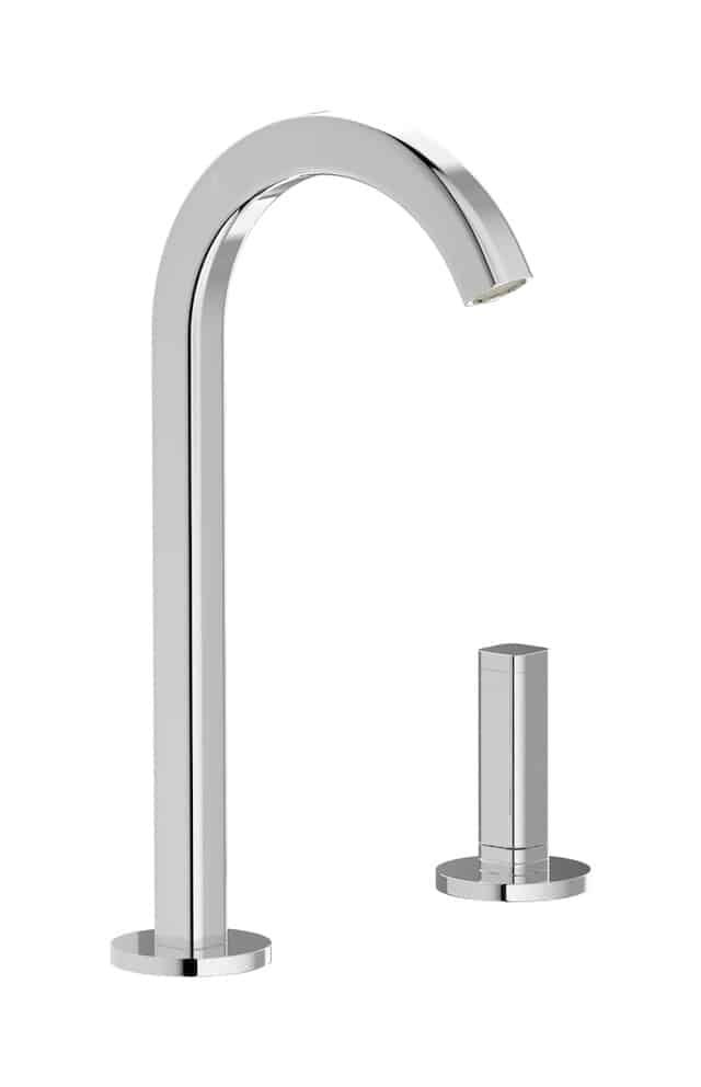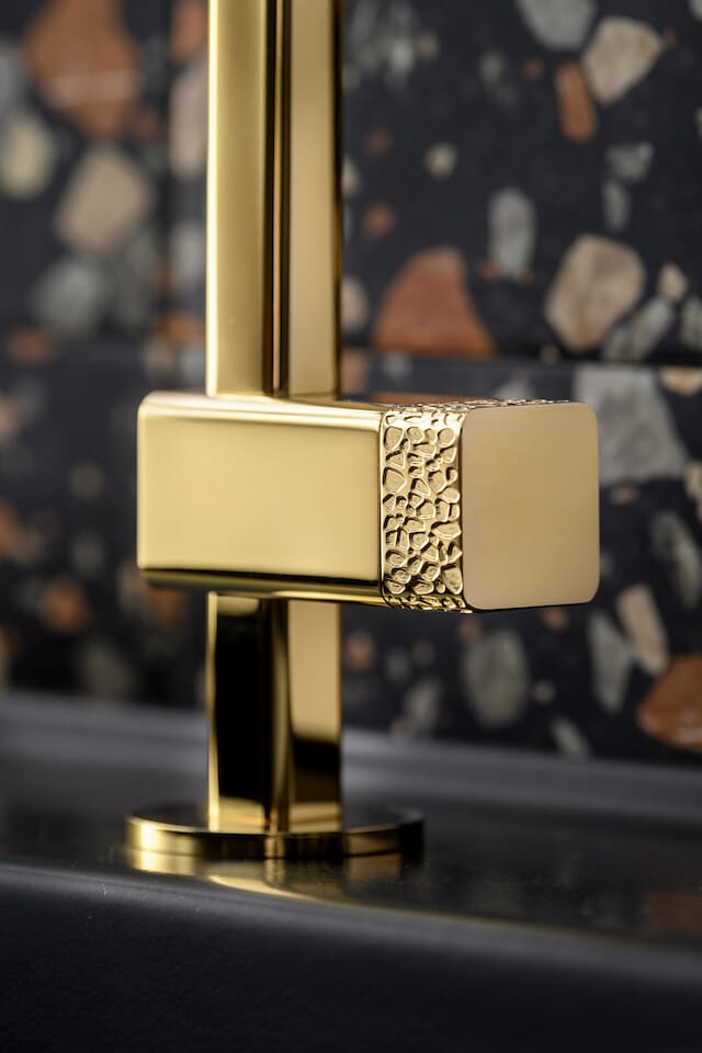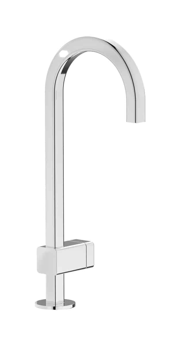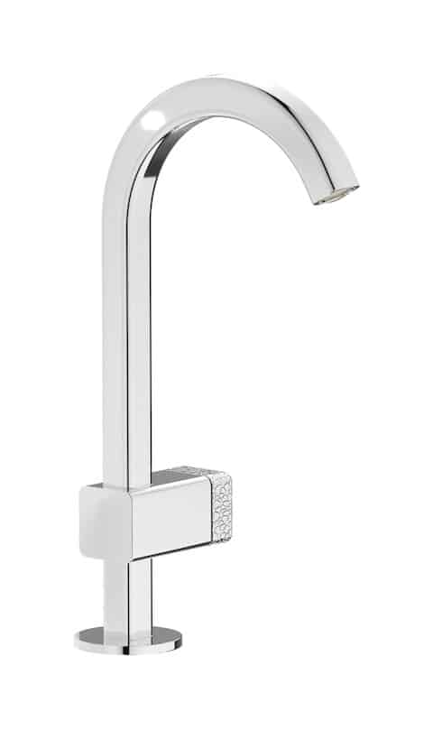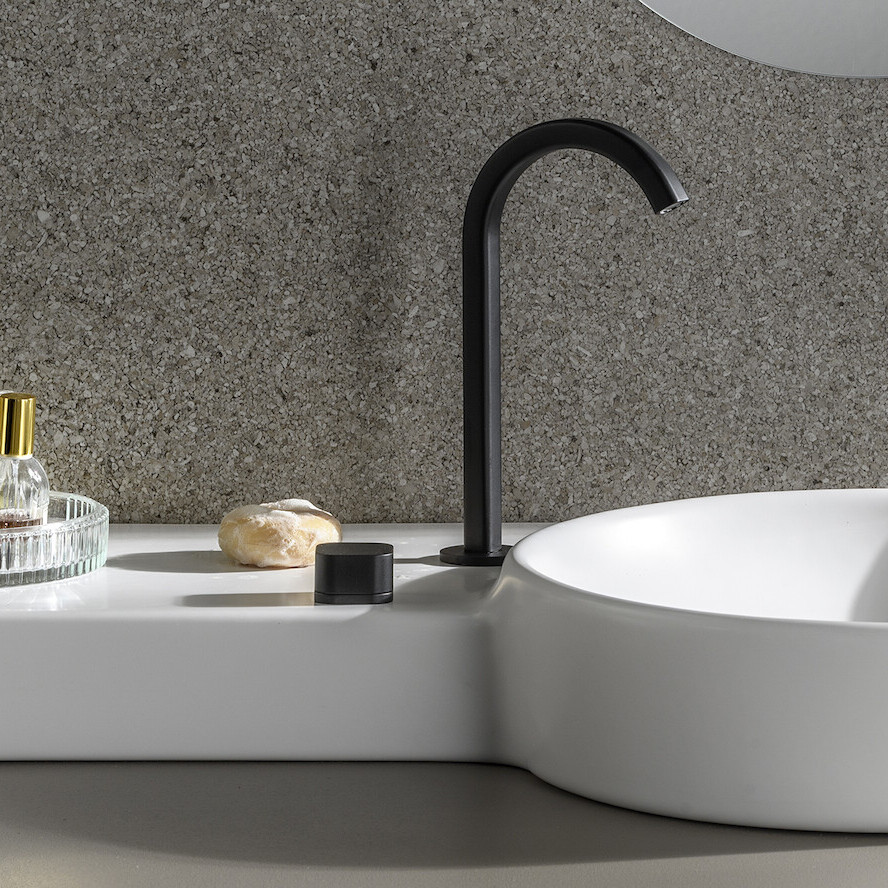 ELIO takes the shape of a pure round arch, showing its contemporary touch in the square section of the spout and in the customisable levers, available in original textures inspired by the sea world. There is no single rule for the perfect shape, everyone has their own, which is why ELIO also offers the possibility of customising the spout by choosing between two types, both perfect.
